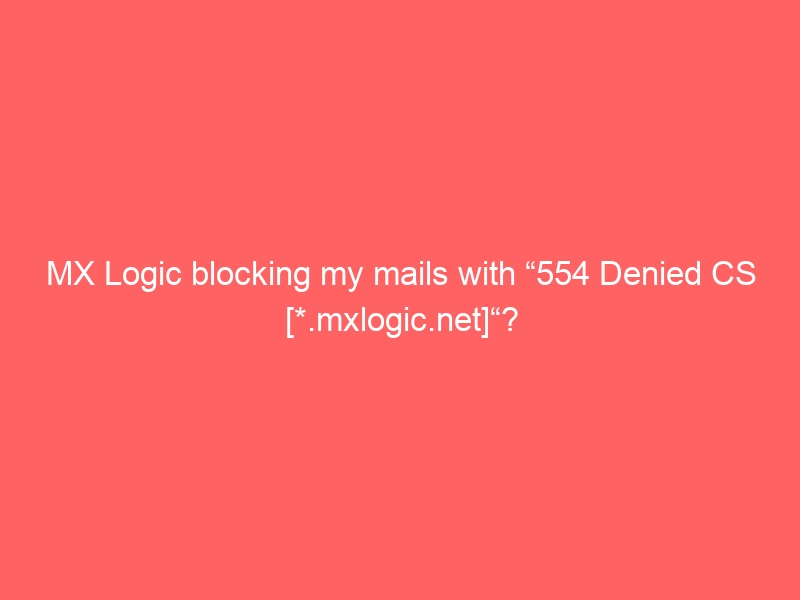 Your mails are blocked with the error message “554 Denied [CS] [*.mxlogic.net] (Mode: normal) (in reply to end of DATA command)” What does it mean? The mail was rejected by Mxlogic / Mcafee because of the content of the message. Try using different message