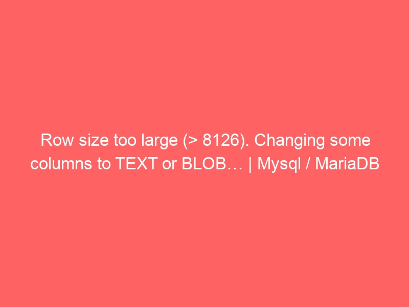 January 1, 2022Linux, MysqlI was getting error “Row size too large (> 8126). Changing some columns to TEXT or BLOB… | Mysql / MariaDB” while dumping databaseThe fix to this issue is to add below parameter in /etc/my.cnfinnodb_strict_mode = 0and restart mysql Previous Post How to fix innodb_table_stats and innodb_index_stats has length mismatch Next Post Inoddb recovery from crash